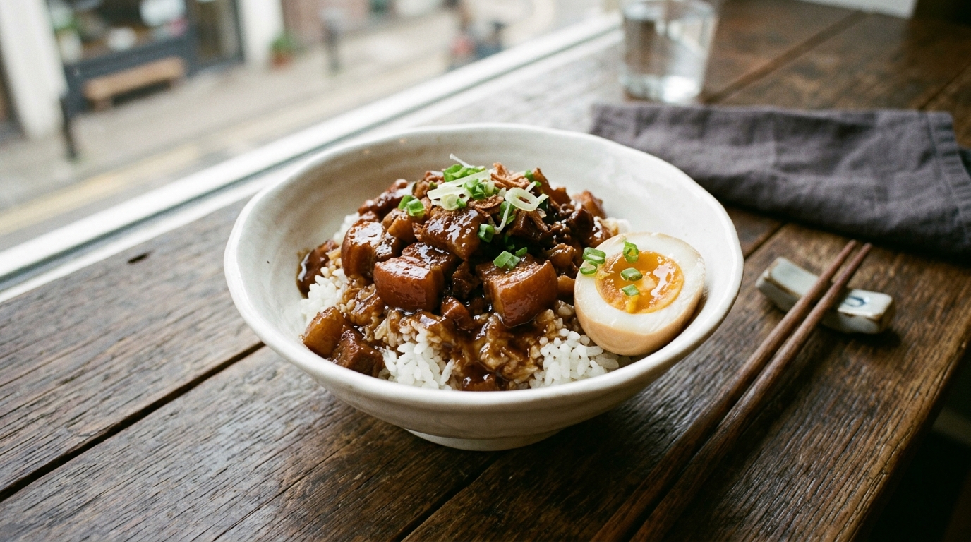 北部的滷肉飯是細肉燥,加了油蔥酥,淋在白米飯上,簡單到幾乎沒有秘密。南部的滷肉飯是大塊五花肉,醬汁濃稠,整塊放在飯上,氣勢完全不一樣。